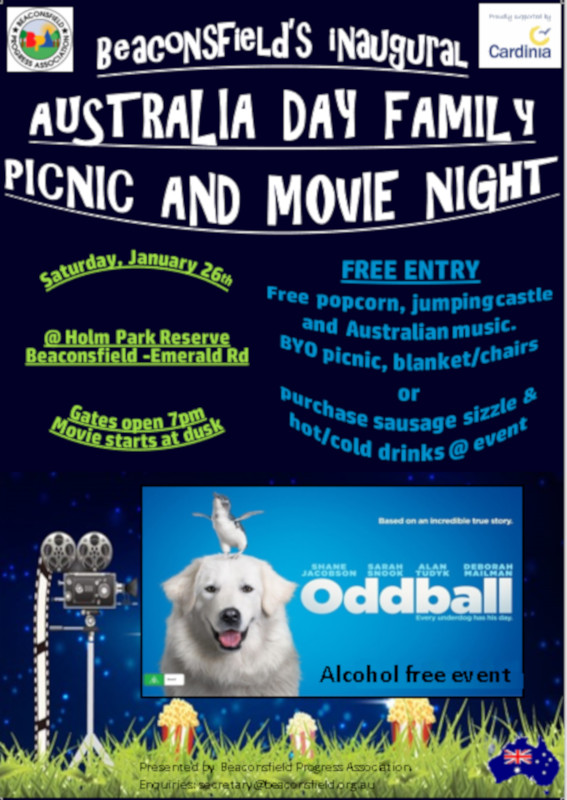 The Beaconsfield Progress Association has organised a free family movie night on Australia Day, 26th January, 2019 at the Holm Park recreation reserve.