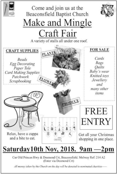 For information contact: makeandmingle@beaconsfieldbaptist.com.au